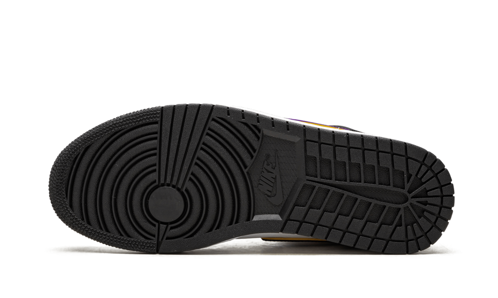 The upper of the Jordan 1 Mid Lakers Top 3 features a combination of premium leather with a color palette that includes purple and yellow (Gold), colors representative of the Lakers, with black and white details to provide the necessary contrast. The "Swoosh" and the heel feature vibrant yellow, while purple appears on the side panels, creating a bold and personality-filled look. The "Wings" logo on the back maintains the authenticity of the Jordan line, completing the look with a touch of classic style.
